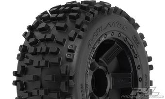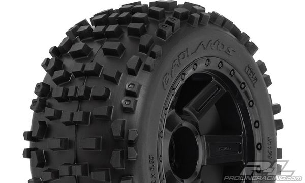 This is a pair of Badlands 3.8" (Traxxas® Style Bead) All Terrain Truck Tires Mounted on Desperado Black ½” Offset 17mm Wheels. Are you ready to tackle any terrain? If so, then the Badlands tires are the answer for you.