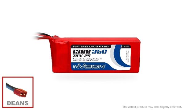 NVISION 2S 1300MAH 7.4V 35C SOFTCASE LIPO with DEANS PLUG.