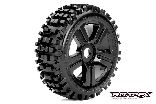 ROAPEX RHYTHEM 1/8 BUGGY TYRE ON BLACK RIMS, 2PCE.