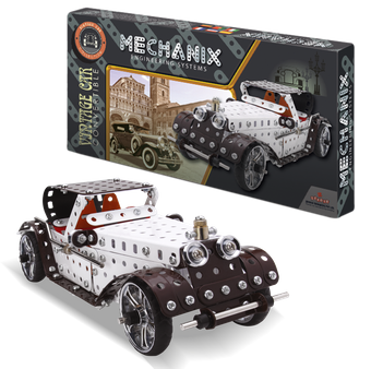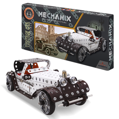 The jewel of the MECHANIX range, this beautifully crafted Vintage car will be the perfect fit in any show case. It comes packed in a plastic case, with a stand for you to display your masterpiece. And of course, it is a convertible, so you can decide whether you like the roof on or off.