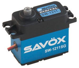 The Savox SW1211SG is the premier digital servo in the Savox Waterproof Lineup. It is a coreless servo that boasts a massive 208.3 ounces of torque and a speed of .10 seconds at 6.0V. The Savox SW-1211SG combines the newest cutting edge technology with super high 12-bit resolution and hardened steel gears for one of the most versatile and waterproof servos on the market today! This is a great upgrade if you plan on expanding your R/C terrain to wet conditions like sleet, rain, and snow.